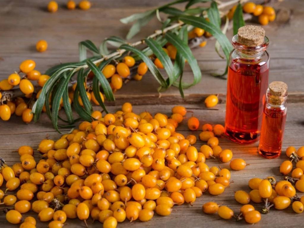 Nakładaj ciepły olej rokitnikowy na suche partie skóry — łokcie, pięty lub nawet usta — przed snem.